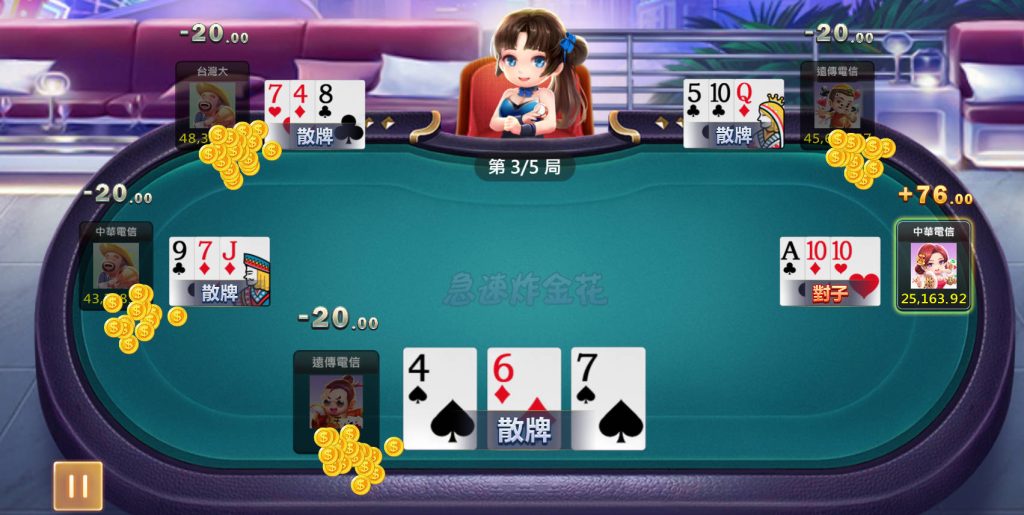 人數:3~5 名玩家同場競技,既能體驗多人互動的刺激,也能快速完成比牌。